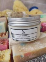 Χειροποίητο βούτυρο σώματος για βαθειά ενυδάτωση και λάμψη της επιδερμίδας. Περιέχει βούτυρο καριτέ, αμυγδαλέλαιο και βιταμίνη Ε, που θρέφουν και απαλύνουν ακόμα και τις πιο απαιτητικές επιδερμίδες, ενώ παράλληλα αρωματίζει με το απαλό άρωμά του. Ιδανικό και περιοχές του δέρματος που έχουν σκληρήνσεις.