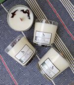 Χειροποίητο κερί σόγιας με Σανταλόξυλο, Κεχριμπάρι και Γιασεμί σε γυάλινο ποτήρι. Αρωματίζει τον χώρο σας για 40 περίπου ώρες και το υλικό του μπορεί να χρησιμοποιηθεί και ως λάδι μασάζ. Το κερί σόγιας πρόκειται για ένα φυσικό υλικό, και μετά από λίγη ώρα από το άναμμα του, διαχέεται στον χώρο σας ενα ευχάριστο άρωμα που σας χαλαρώνει και δρα αποσμητικα, χωρίς να εισπνέετε τοξικές αναθυμιάσεις.