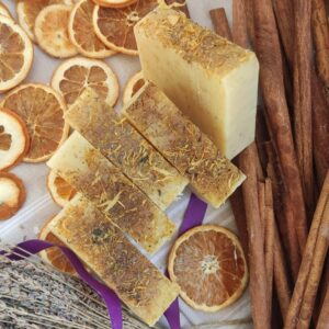 Σαπούνι καθαρισμού προσώπου και σώματος με ελαιόλαδο, λάδι καρύδας, φοινικέλαιο, βοτανικό ελαίο καλέντουλας και χαμομηλιού, αιθέριο ελαίο νέρολι και αποξηραμένα άνθη από χαμομήλι και καλέντουλα. Μπορεί να χρησιμοποιηθεί απ' ευθείας επάνω στο δέρμα τρίβοντας απαλά για πολύ απαλή απολέπιση, στο πρόσωπο ή στο σώμα, ή απλώς να πλυθείτε μόνο με τον αφρό του. Τα καταπραϋντικά και επουλωτικά συστατικά του, το καθιστούν ιδανικό για όλους τους τύπους επιδερμίδας, ακνεϊκά δέρματα αλλά και για δέρματα με τάσεις κνησμού και δερματίτιδες. Ιδανικό σαπούνι για να πλύνετε το μωρό σας με κάτι απαλό.